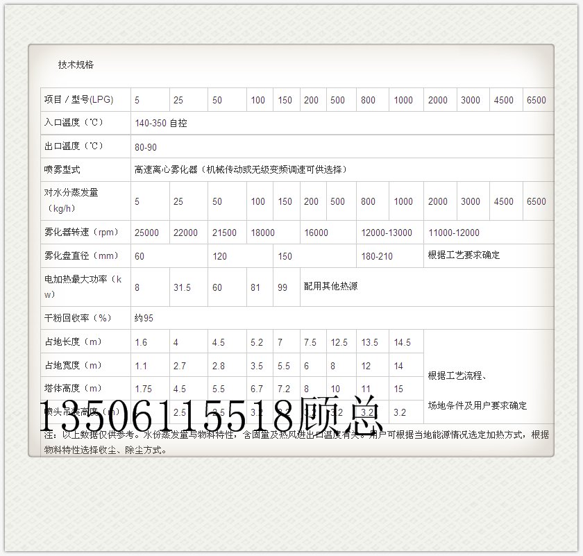 有喷雾干燥机能从液体直接干燥成粉体的详细技术参数吗?